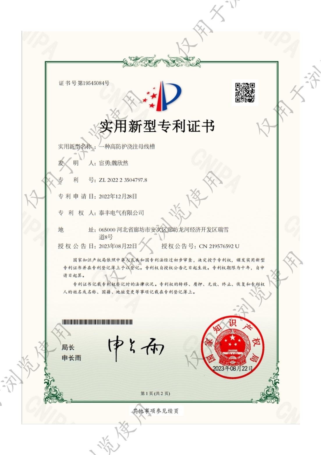泰豐電氣有限公司-一種高防護(hù)澆注母線槽